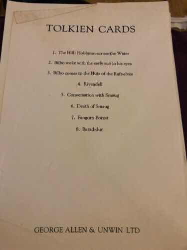Sets of 8 cards with matching envelopes in plastic sleeve was produced from 1975 by George Allen & Unwin publishers from original artwork by Tolkien. 7¾" - 9¾" tall.